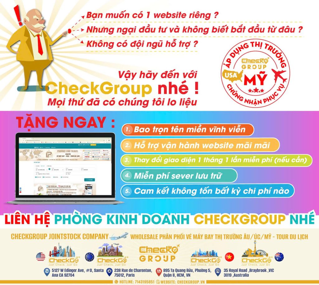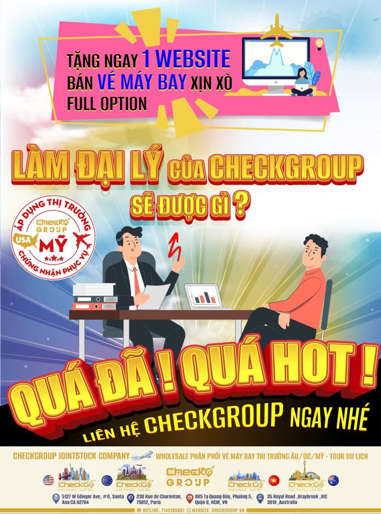 CheckGroup – Tổng Công Ty Cung Cấp Dịch Vụ Du Lịch & Hàng Không với hơn 15 năm kinh nghiệm trong lĩnh vực hàng không, du lịch là một trong những đơn vị tiên phong tại Việt Nam trong việc xây dựng hệ sinh thái du lịch toàn diện dành cho khách hàng trong và ngoài nước.